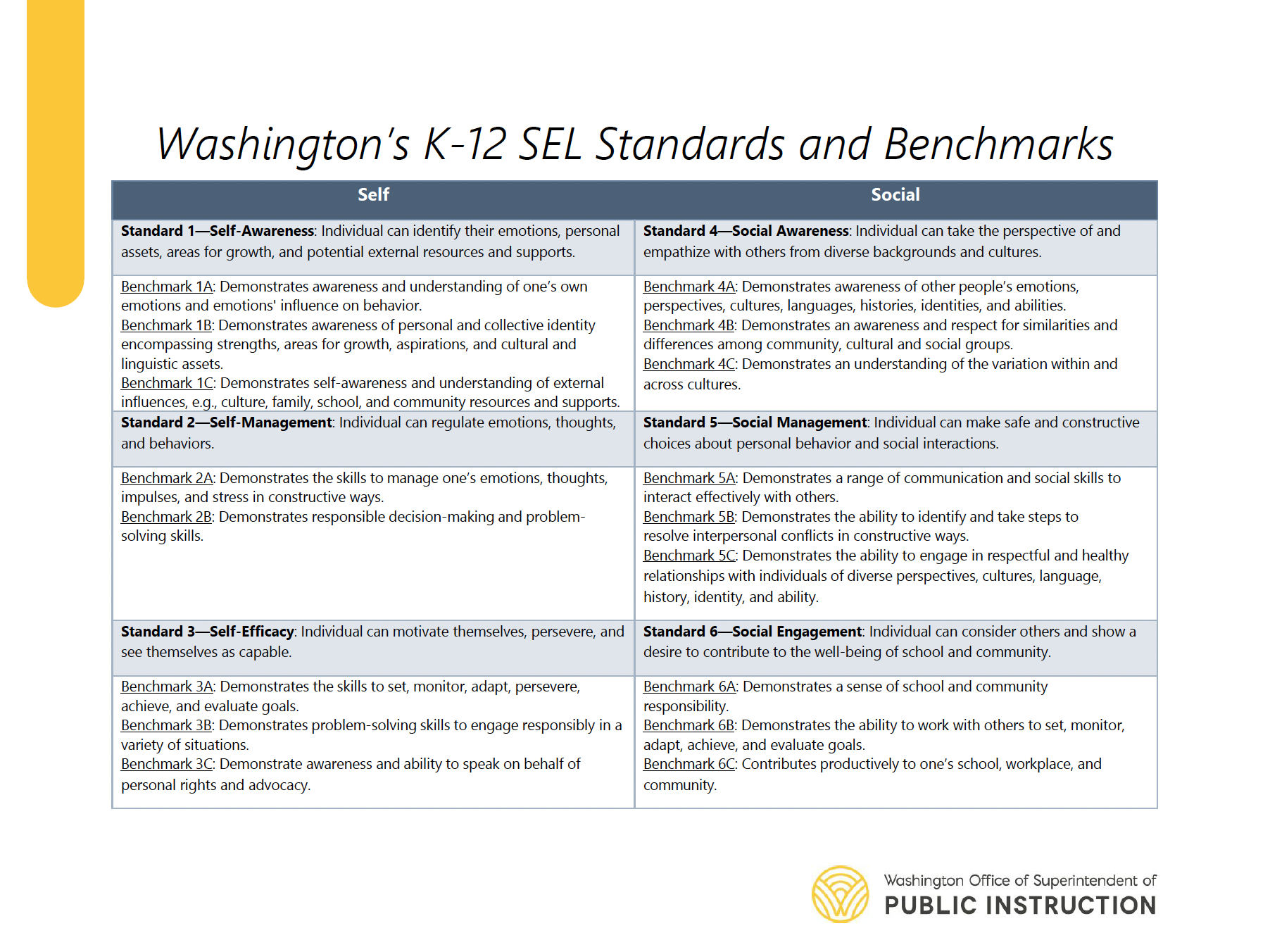 STATEWIDE DEFINITION: Social Emotional Learning (SEL) is a process through which individuals build awareness and skills in managing emotions, setting goals, establishing relationships, and making responsible decisions that support success in school and in life. (OSPI Website)