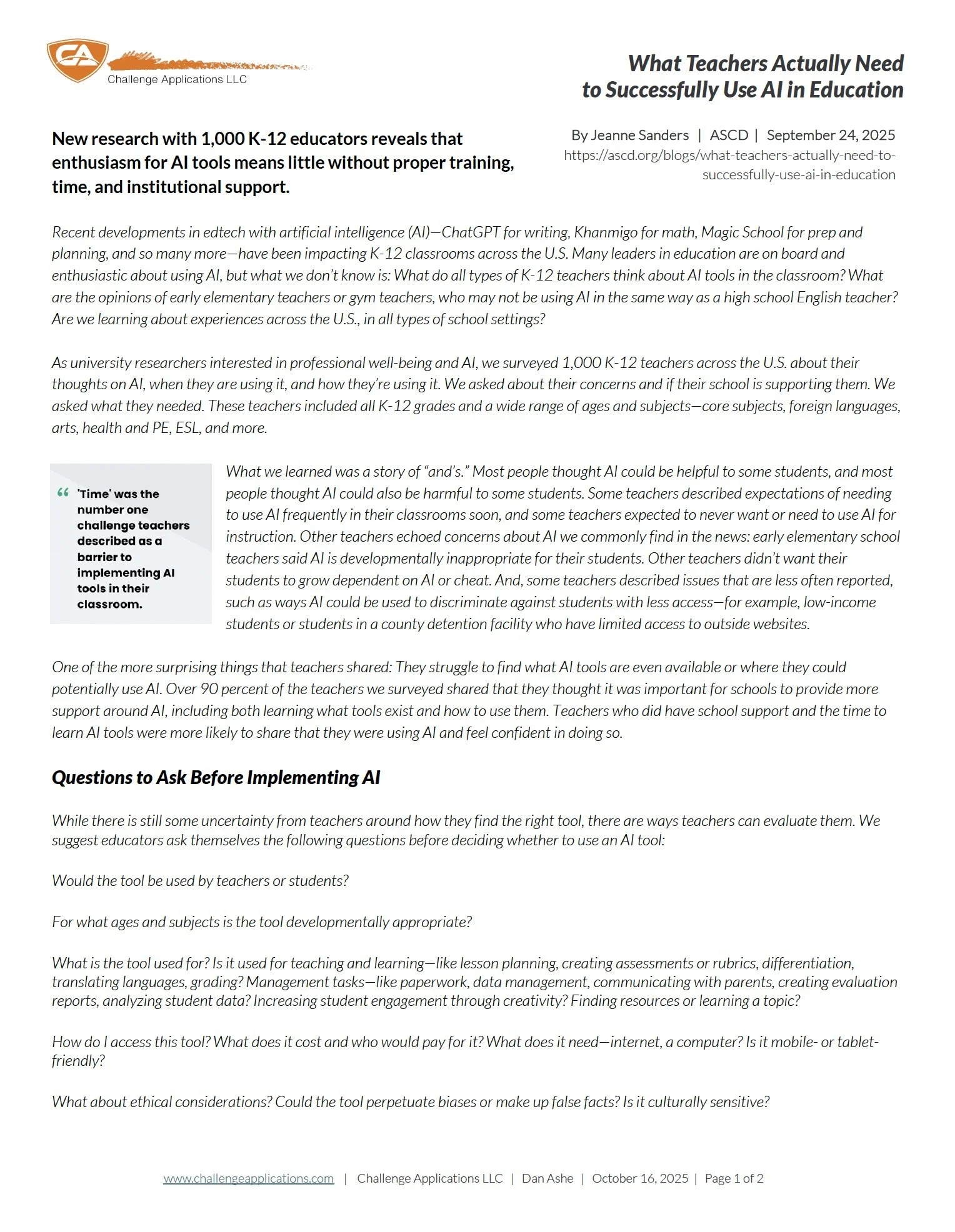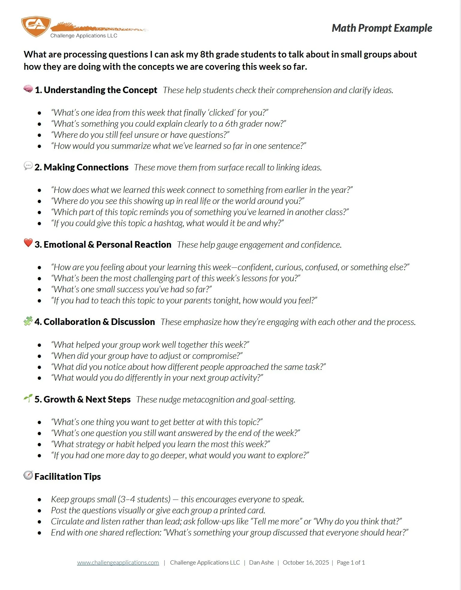 (From Edutopia’s article by author, Alana Winnick) For me, I reach for Brisk Teaching most when I have a great article or video but no clue how to turn it into something interactive. I love the Boost feature because it can quickly generate activities with built-in comprehension checks, a big help when time is short. As a Chrome extension, it lives in your browser, ready to rework whatever content you’re looking at into classroom-ready materials, assessments, slide decks, podcasts, and more. If you want a quick win without fiddling with prompts, give Brisk a try.